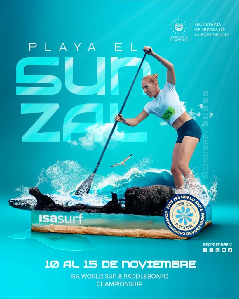 El Salvador se alista para ser sede del ISA World SUP & Paddleboard Championship 2025, que se celebrará del 10 al 15 de noviembre en la playa El Sunzal, bajo el proyecto insignia #SurfCity El Salvador. El evento reunirá a más de 600 atletas de más de 40 países, quienes competirán en distintas disciplinas de Stand Up Paddle (SUP) y paddleboard, consolidando nuevamente al país como uno de los destinos más atractivos para el surf y los deportes acuáticos en el mundo.