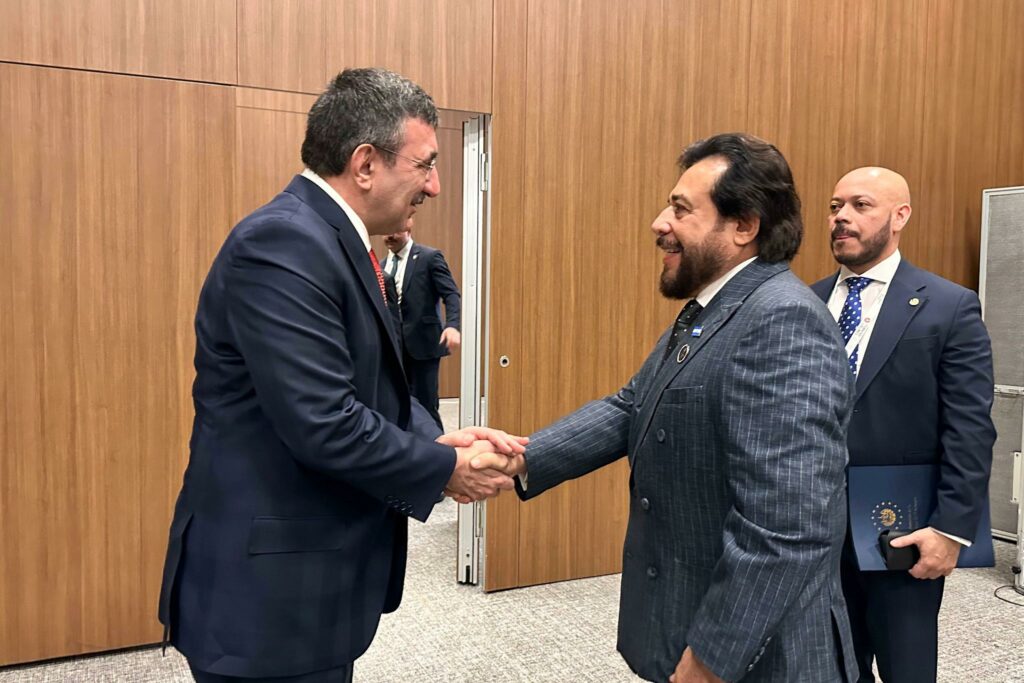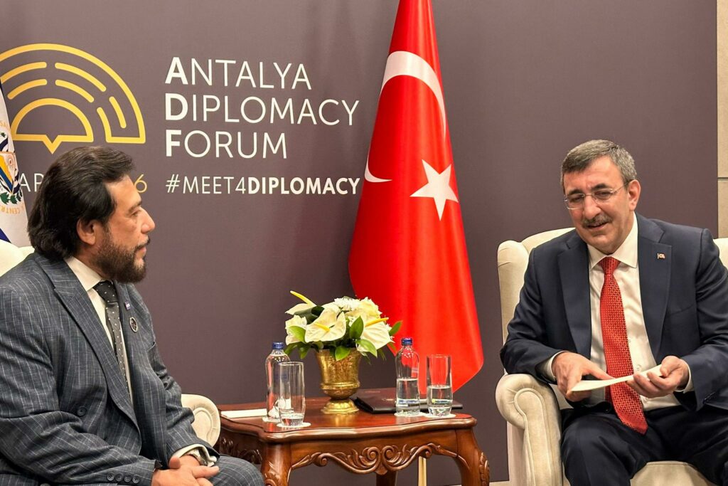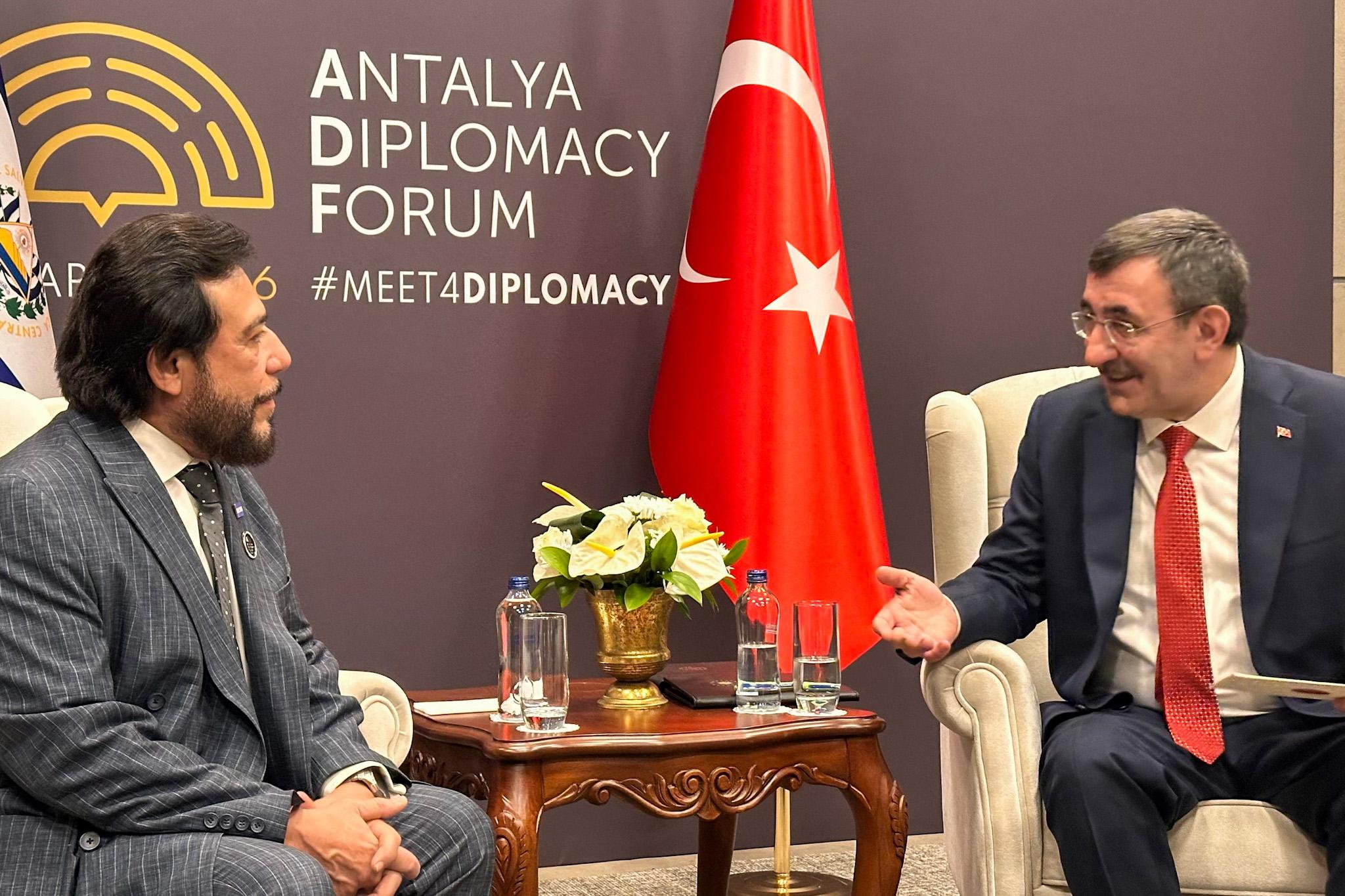 El Vicepresidente de la República de El Salvador, Sr. Félix Ulloa hijo (@fulloa51), sostuvo una reunión bilateral con el Vicepresidente de la República de Türkiye, Sr. Cevdet Yılmaz, en el marco de su participación en el Antalya Diplomacy Forum, #ADF2026, con el objetivo de fortalecer los vínculos de cooperación y amistad.