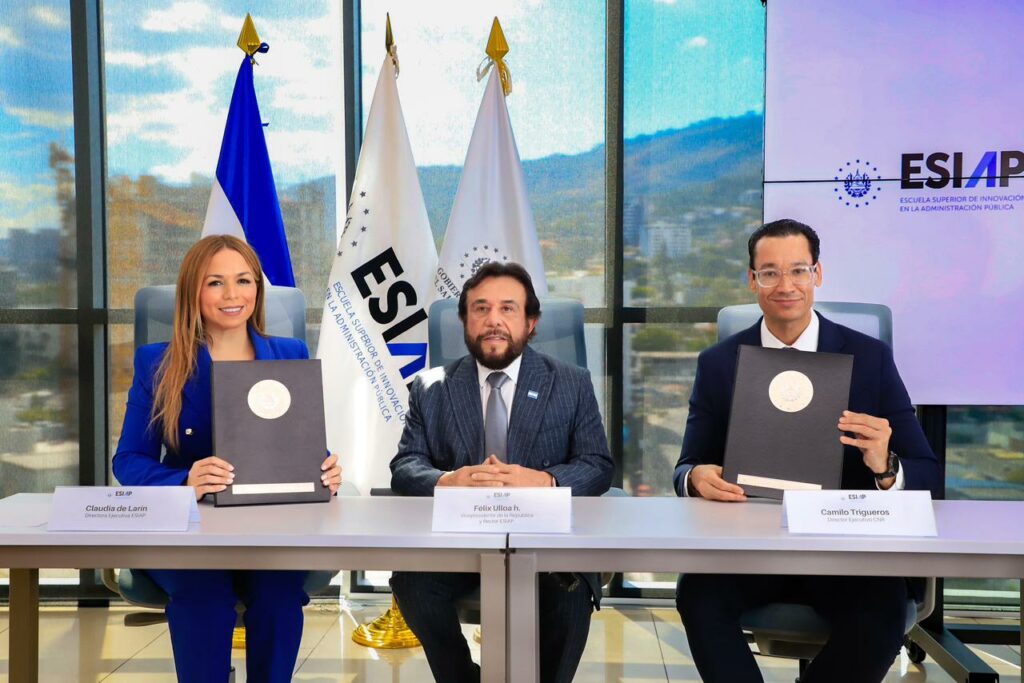 La formación para el fortalecimiento de la función pública continúa impulsando el desarrollo del país. 🇸🇻👩🏽💻 El Vicepresidente de la República de El Salvador, Sr. Félix Ulloa hijo (@fulloa51), en su calidad de Rector de la Escuela Superior de Innovación en la Administración Pública, ESIAP, firmó un acuerdo de cooperación con el Director Ejecutivo del Centro Nacional de Registro, CNR, Sr. Camilo Trigueros, con el propósito de fortalecer las capacidades institucionales y contribuir a la modernización del Estado.