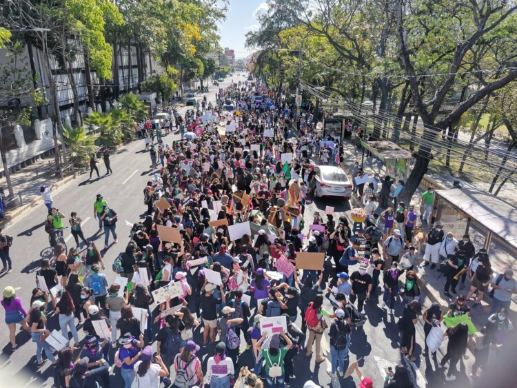 Mujeres marchan por la capital de San Salvador, El Salvador, en el marco del Día Internacional de la Mujer, el domingo 7 de marzo de 2021./ Cortesía de @Colecfeminista