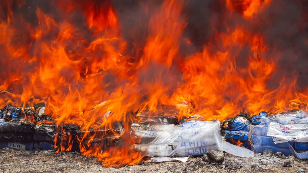 La Fiscalía General de la República (FGR) en coordinación con la División Antinarcóticos de la Policía Nacional Civil (PNC) y la Superintendencia de Regulación Sanitaria, verificaron la destrucción de 360 kilos de cocaína valorados en $9,050,400.00 dólares.