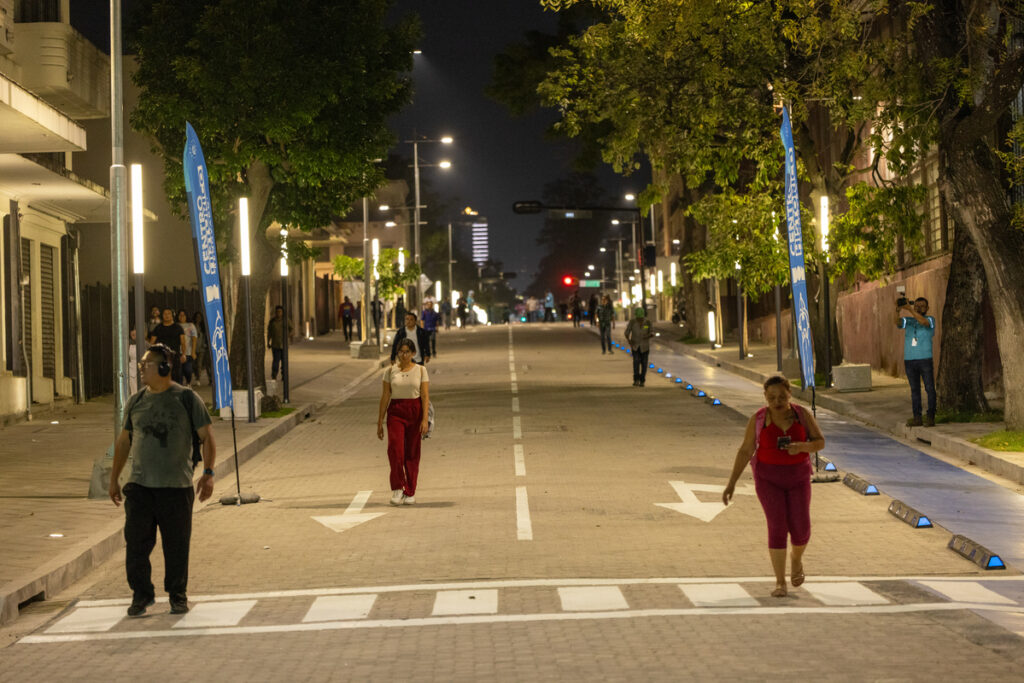 El proyecto, que abarca calles, aceras, ciclovías y sistemas subterráneos, ha convertido una zona antes caótica y deteriorada en un entorno seguro, ordenado y acogedor. Hoy, el corazón de San Salvador deslumbra con aceras accesibles, cableado subterráneo, iluminación moderna, paisajismo y mobiliario urbano, consolidándose como un referente urbano y turístico.