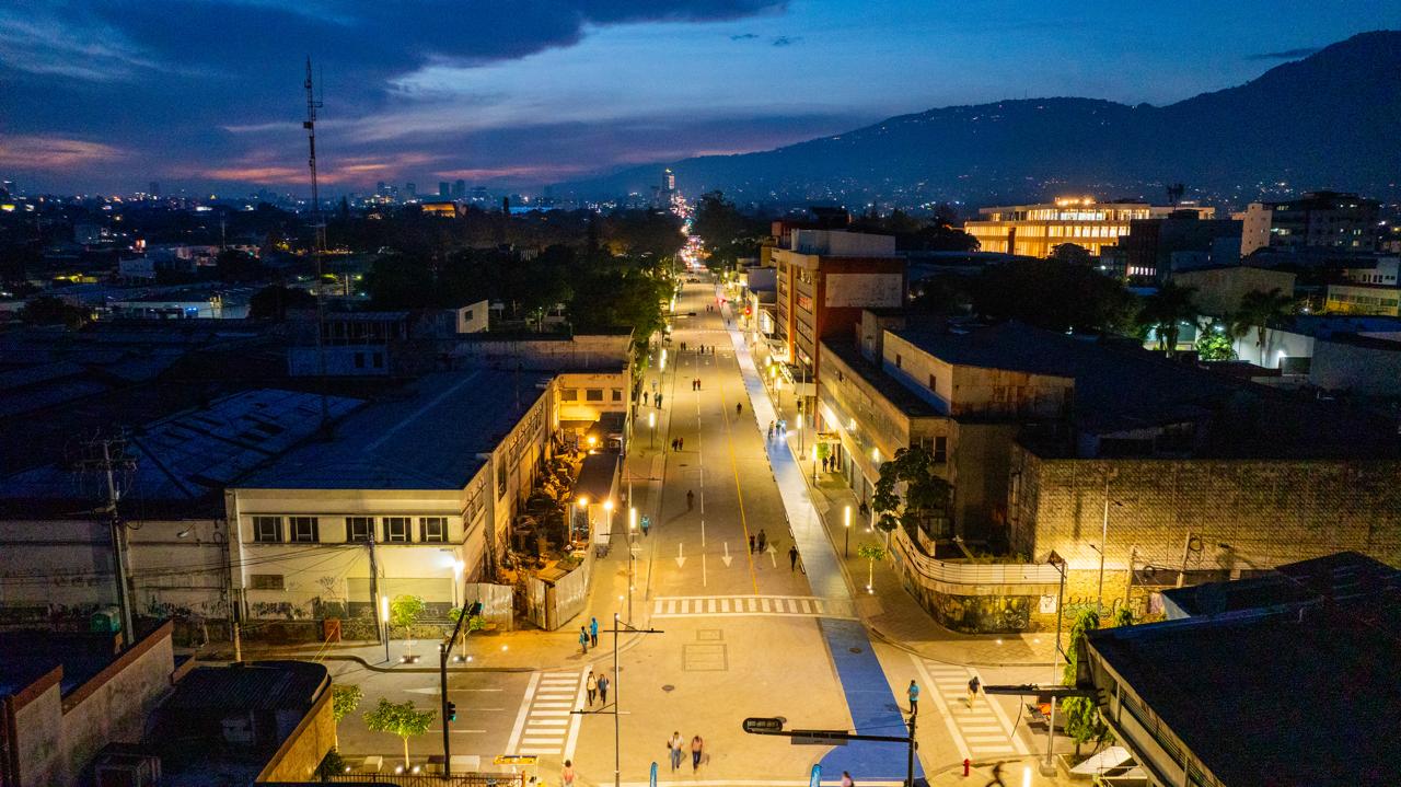 El proyecto, que abarca calles, aceras, ciclovías y sistemas subterráneos, ha convertido una zona antes caótica y deteriorada en un entorno seguro, ordenado y acogedor. Hoy, el corazón de San Salvador deslumbra con aceras accesibles, cableado subterráneo, iluminación moderna, paisajismo y mobiliario urbano, consolidándose como un referente urbano y turístico.