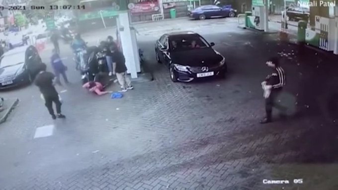 Ayer había surgido un video de dos hombres golpeándose y pateándose entre sí en una estación de servicio de Londres.