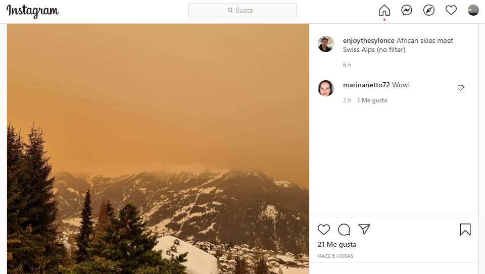«La corriente del suroeste nos trae polvo del Sáhara con pico el sábado», confirmó en su cuenta de Twitter MétéoSuisse, la Oficina Federal de Meteorología y Climatología de Suiza, que ha compartido una foto del centro de Ginebra, con el cielo amarillento a causa del fenómeno.