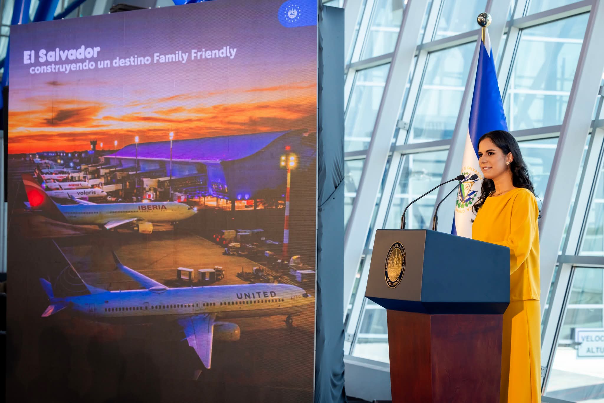 La primera dama de la República, Gabriela de Bukele, celebró con entusiasmo en sus redes sociales la certificación otorgada este lunes al Aeropuerto Internacional de El Salvador San Óscar Arnulfo Romero y Galdámez con el Sello Family Friendly, un reconocimiento que distingue a la terminal aérea por sus mejoras orientadas a brindar una experiencia más cómoda, segura y pensada especialmente para las familias que viajan con niños.