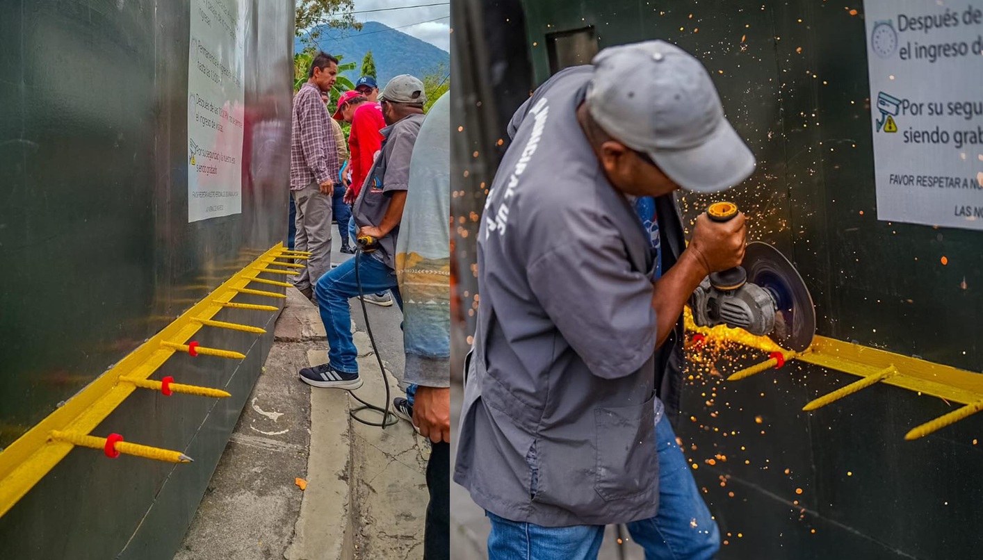 Personal de Desarrollo Urbano, en coordinación con el Cuerpo de Agentes Municipales (CAM) de San Salvador, procedió a retirar las púas, que representaban un grave riesgo para las familias y transeúntes del sector.