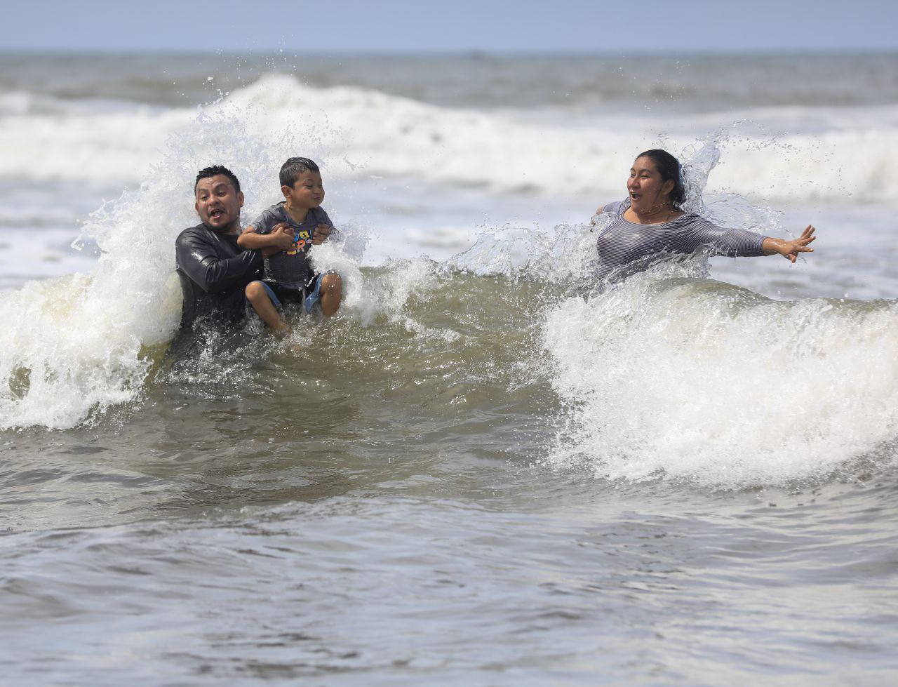 La afluencia de visitantes continúa en aumento durante este periodo vacacional en la Playa El Majahual, donde numerosas familias salvadoreñas han llegado para disfrutar de un refrescante baño y del ambiente característico de la temporada.
