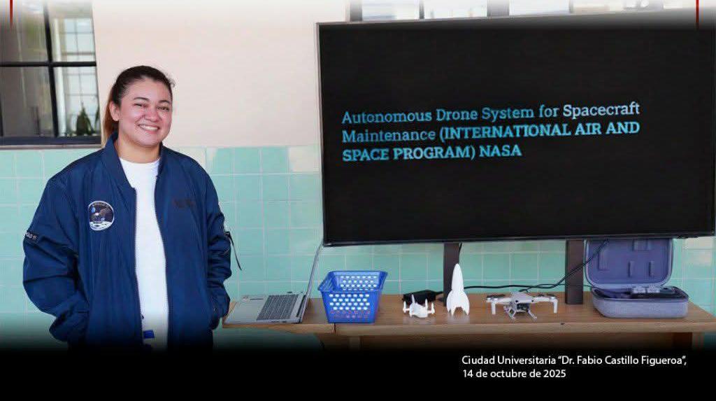 La joven Ángela Pineda, estudiante de tercer año de la carrera de Ingeniería de Sistemas Informáticos de la Universidad de El Salvador (UES), ha sido seleccionada para participar en el prestigioso International Air and Space Program 2025 de la NASA, gracias a su innovador proyecto titulado “Drones con mini propulsores con cuatro sensores”.