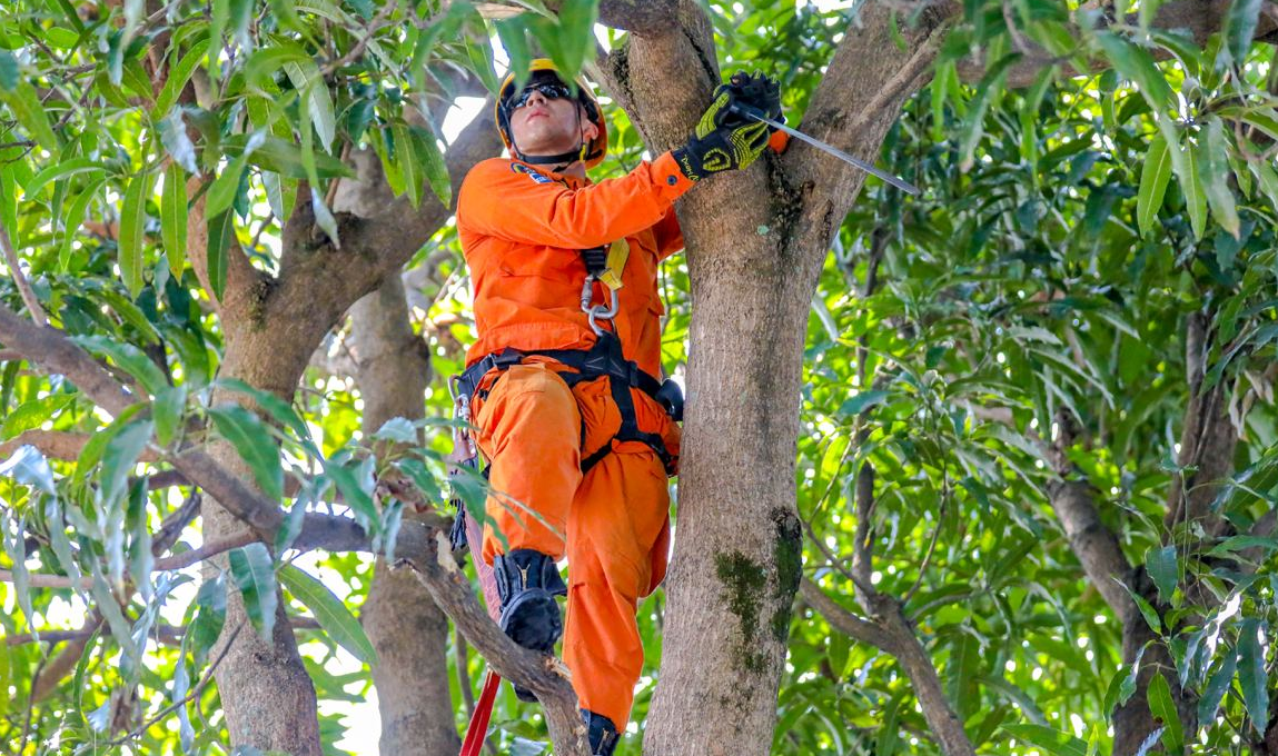 José Roberto Martir Cruz, bombero dos, explicó que hacen el descopado siguiendo todas las medidas de seguridad. “Utilizamos equipo de rescate, arnés, cuerdas, lazos para que nuestros compañeros estén seguros a la hora de cortar las ramas, al igual que los habitantes de la vivienda y sus vecinos”, detalló.