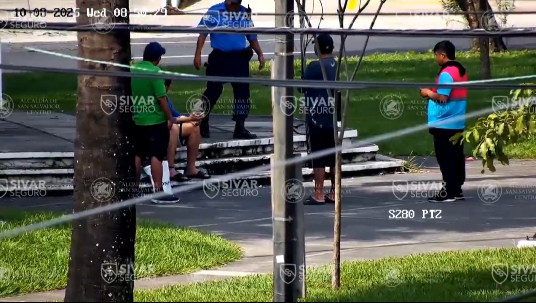 Las cámaras del sistema de videovigilancia Sívar Seguro, de la Alcaldía de San Salvador Centro, registraron el momento en que un grupo de jóvenes consumía bebidas embriagantes en la Plaza Argentina, ubicada en las Fuentes Beethoven, sobre el paseo General Escalón.