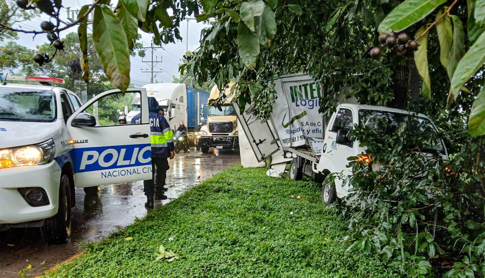 La Policía Nacional Civil informó que un conductor de camión perdió el control y se estrelló contra un árbol luego de ser impactado por una rastra sobre el km 33 ½ de la carretera Panamericana, en Ciudad Arce, La Libertad.