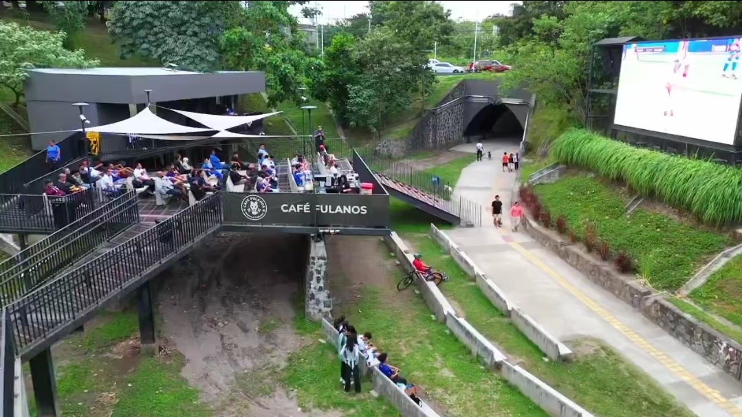 El Ministerio de Obras Públicas informó que el cine al aire libre, instalado sobre el bulevar Monseñor Romero, se transformó este jueves en un espacio diseñado para el disfrute de los salvadoreños. Decenas de personas se reunieron para presenciar la transmisión del partido entre Surinam y El Salvador, en un ambiente familiar y de convivencia.