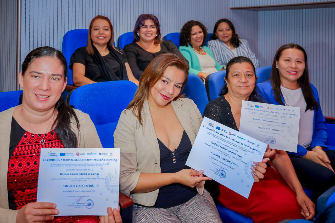 El Gobierno de El Salvador, con el apoyo de la Unión Europea y la Agencia Española de Cooperación Internacional para el Desarrollo (AECID), celebró la graduación del diplomado «Mujer y Negocios», un programa que benefició a 126 emprendedoras de 11 municipios del país.