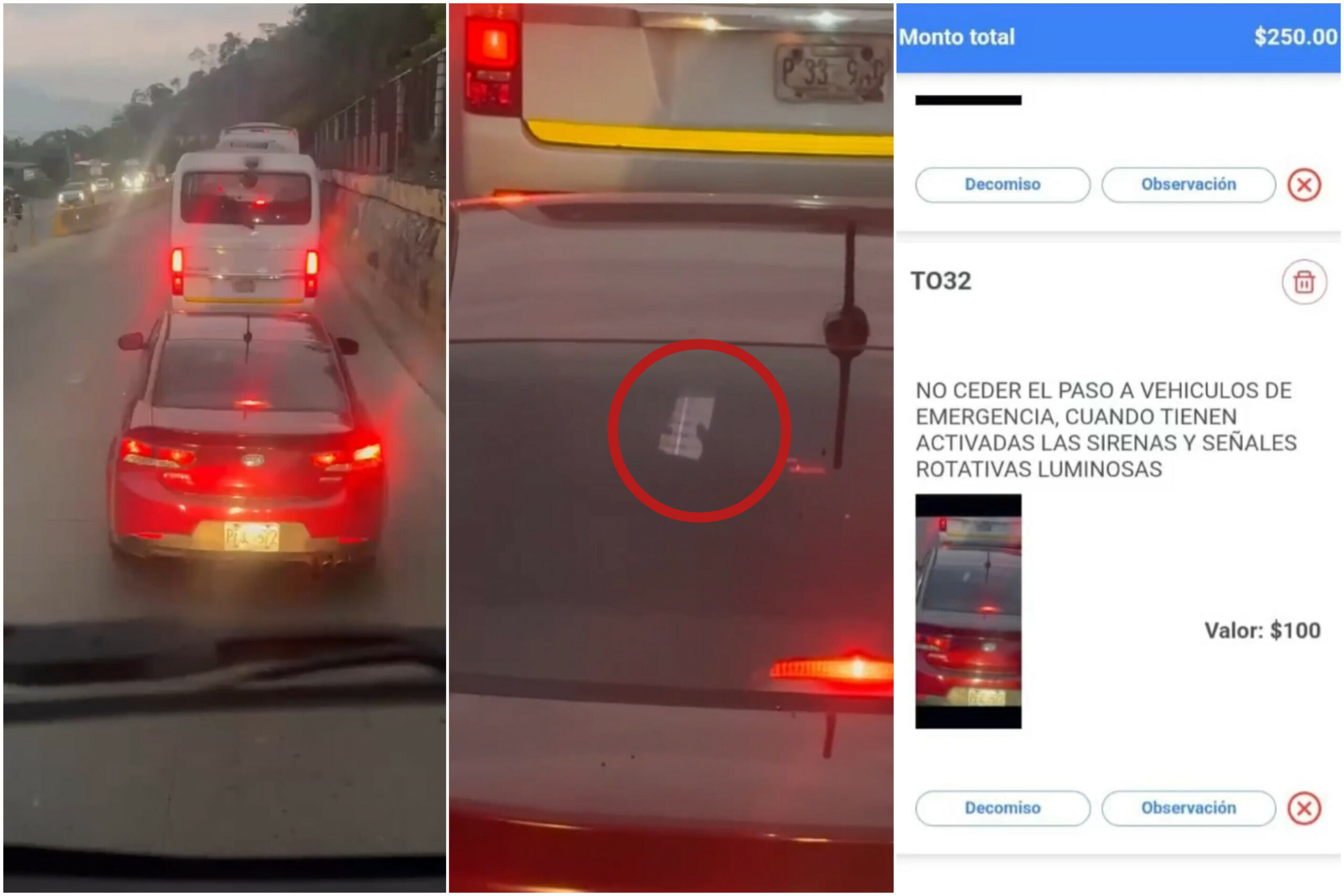 Ante esta situación, las autoridades procedieron a imponer las sanciones correspondientes: una multa de $100 por no ceder el paso a un vehículo de emergencia (TO 32) y otra de $150 por conducir utilizando el teléfono celular (TO 113).