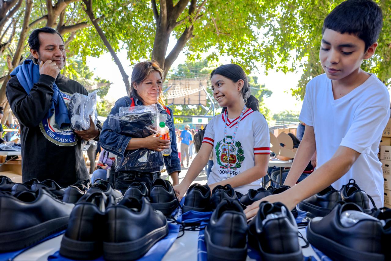 Este día, padres de familia de alumnos del Complejo Educativo República del Perú, ubicado en Mejicanos, San Salvador Centro, realizaron el cambio de tallas de uniformes y zapatos escolares para sus hijos, con el objetivo de asegurar que cuenten con los insumos adecuados para el presente año lectivo.