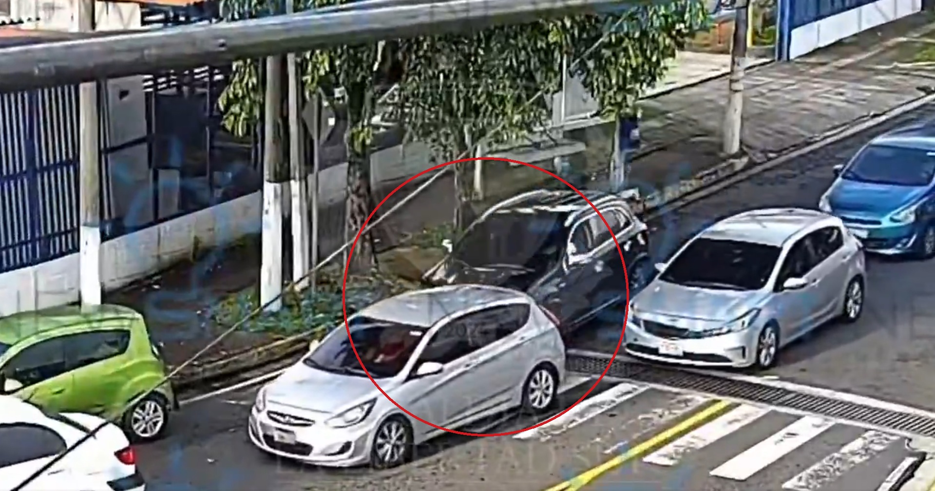 En las imágenes se aprecia cómo una camioneta que circulaba a alta velocidad por la calle El Jabalí impacta contra un sedán que esperaba su turno para incorporarse al bulevar.