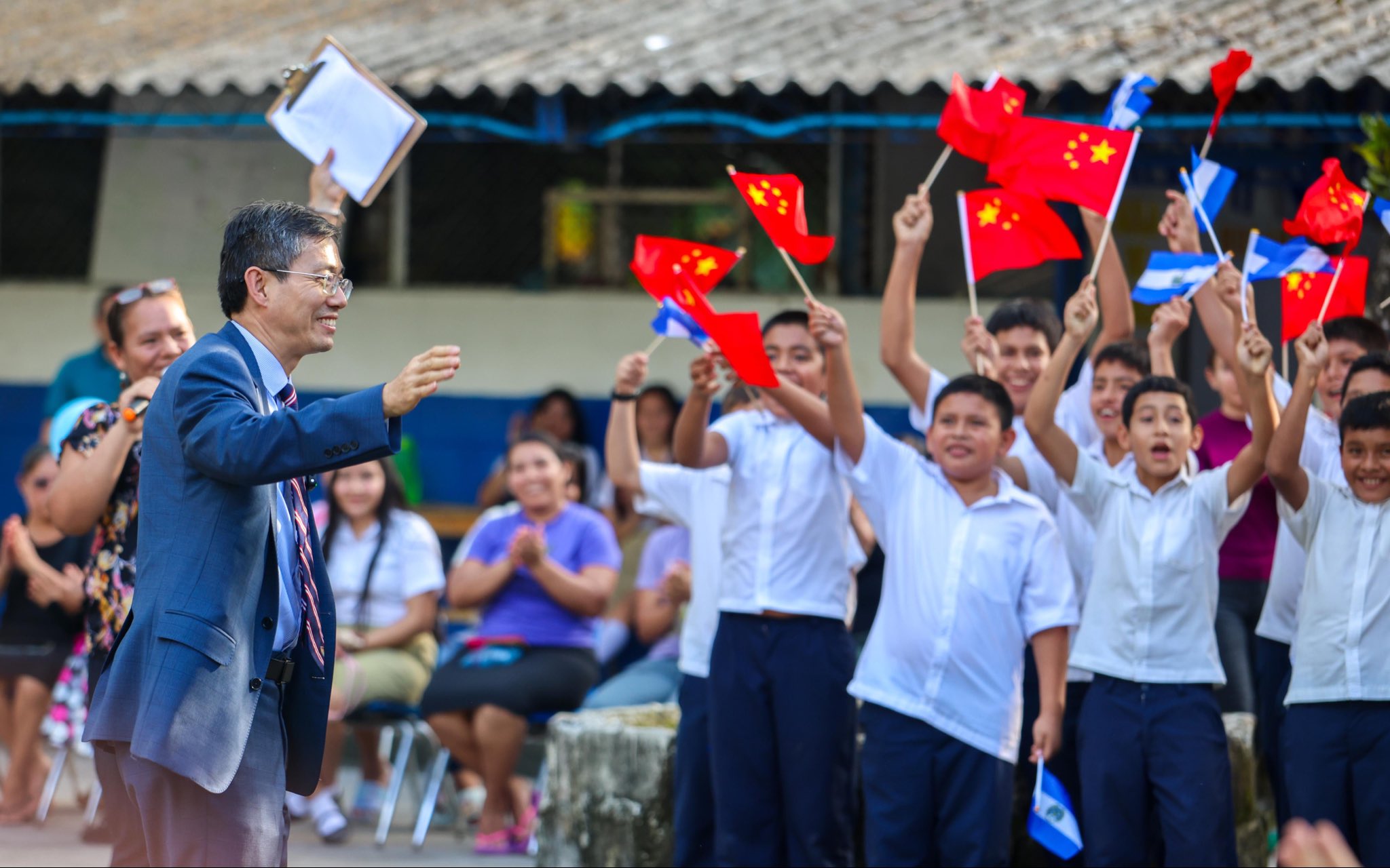 El Diplomático de La Embajada China , Zhang Yanhui, visitó el Complejo Educativo del cantón Joya Grande, en Santiago Texacuangos, donde fue recibido con entusiasmo por docentes y estudiantes que expresaron su gratitud por el apoyo que el país asiático ha brindado al sistema educativo salvadoreño.