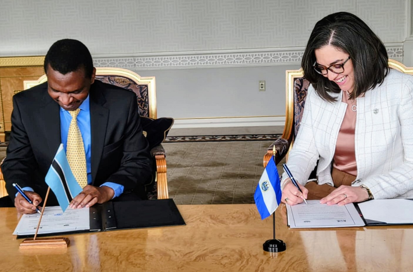 El Salvador y Botsuana establecieron oficialmente relaciones diplomáticas tras la firma de un comunicado conjunto en la sede de la Organización de las Naciones Unidas, marcando el inicio de una nueva etapa de acercamiento entre ambas naciones.