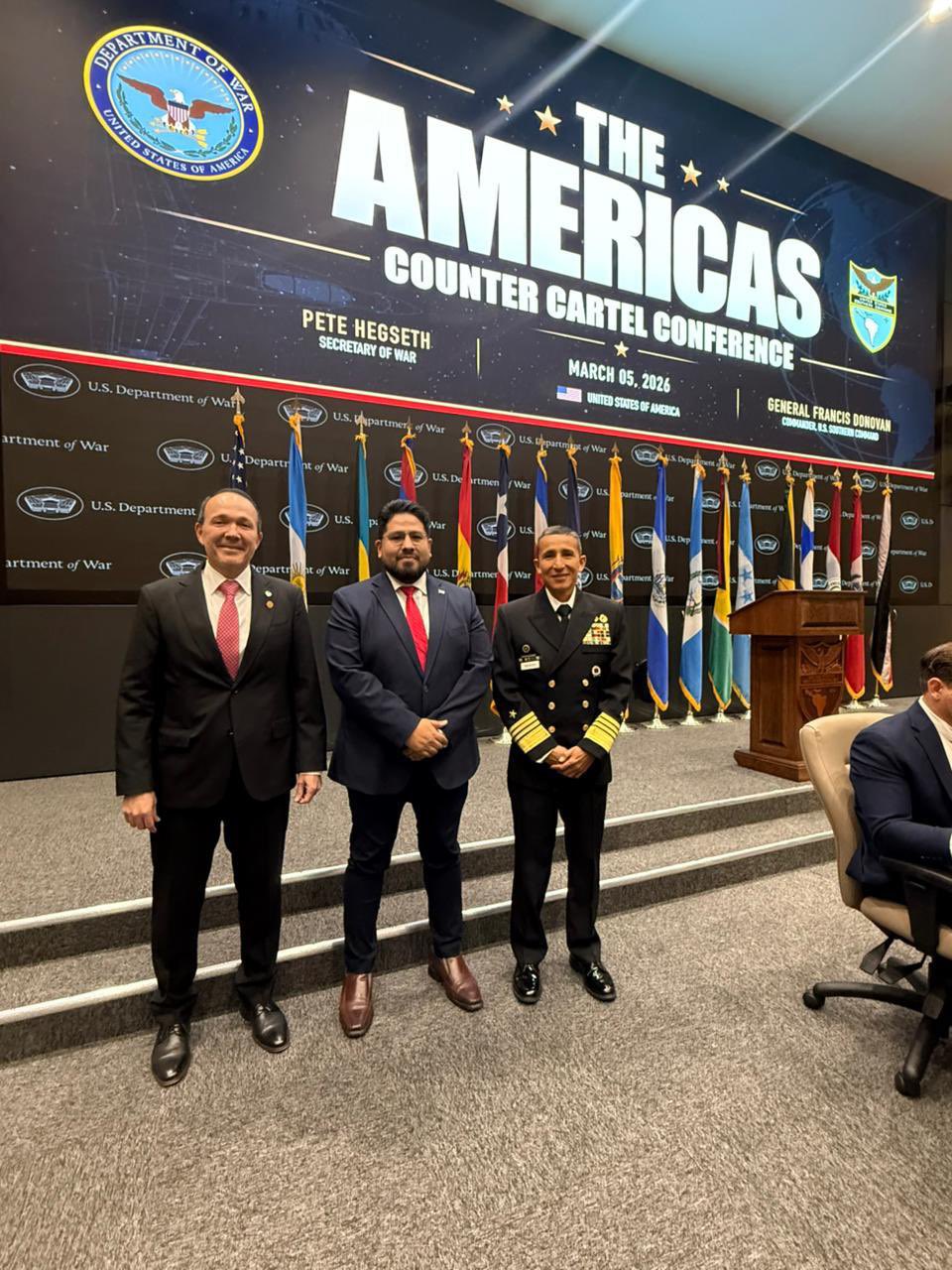 El ministro de Seguridad, Gustavo Villatoro , y el ministro de Defensa, Francis Merino Monroy , representan a El Salvador en la conferencia “América Contra los Cárteles”, que se desarrolla en la sede del Comando Sur de los Estados Unidos, en Florida, donde se anunció una ofensiva militar contra estructuras del narcotráfico que operan en la región.