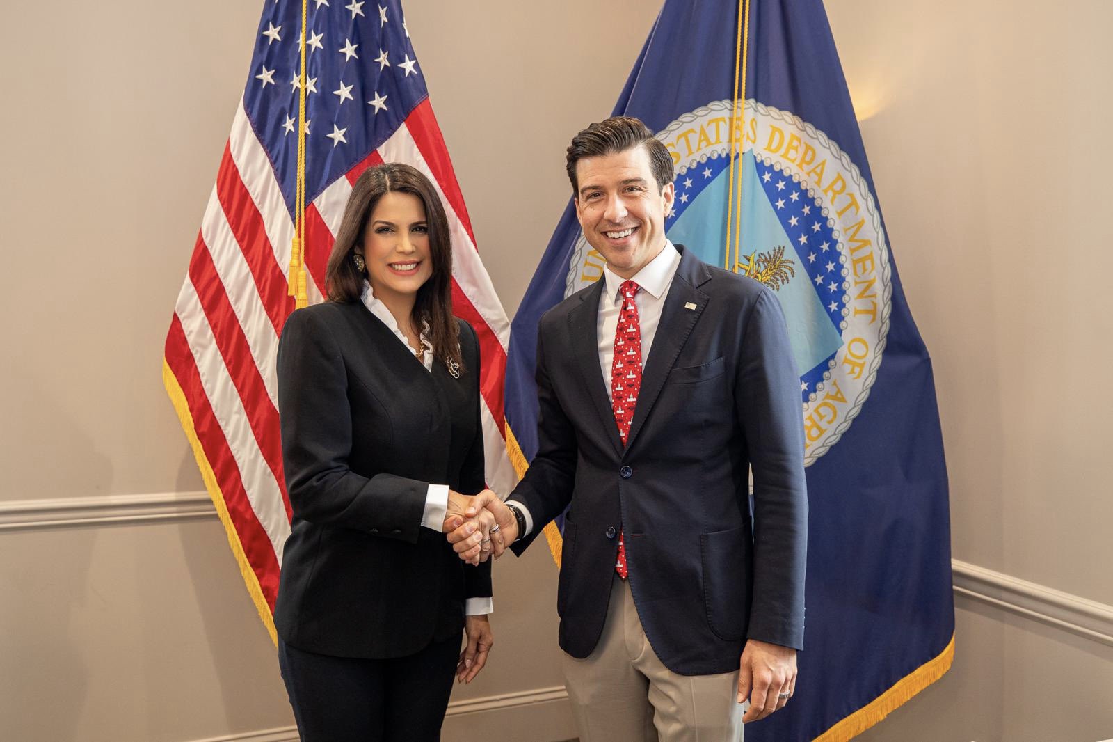 La embajadora Milena Mayorga sostuvo un encuentro clave con Luke J. Lindberg, Under Secretary for Trade and Foreign Agricultural Affairs del Departamento de Agricultura de Estados Unidos (USDA), donde se coordinó el envío de una misión de trabajo compuesta por 35 miembros —expertos, empresarios y funcionarios agrícolas estadounidenses— que visitará El Salvador próximamente.