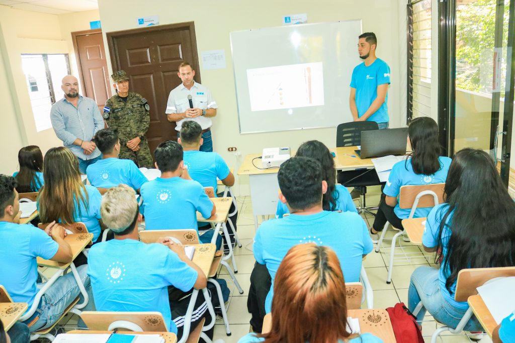 Cabe destacar que un total de 2.520 jóvenes, entre los 18 y 30 años, están recibiendo capacitaciones de miembros del Comando de Ingenieros de la Fuerza Armada de El Salvador (FAES) en cada una de las 14 sedes de las cabeceras departamentales.
