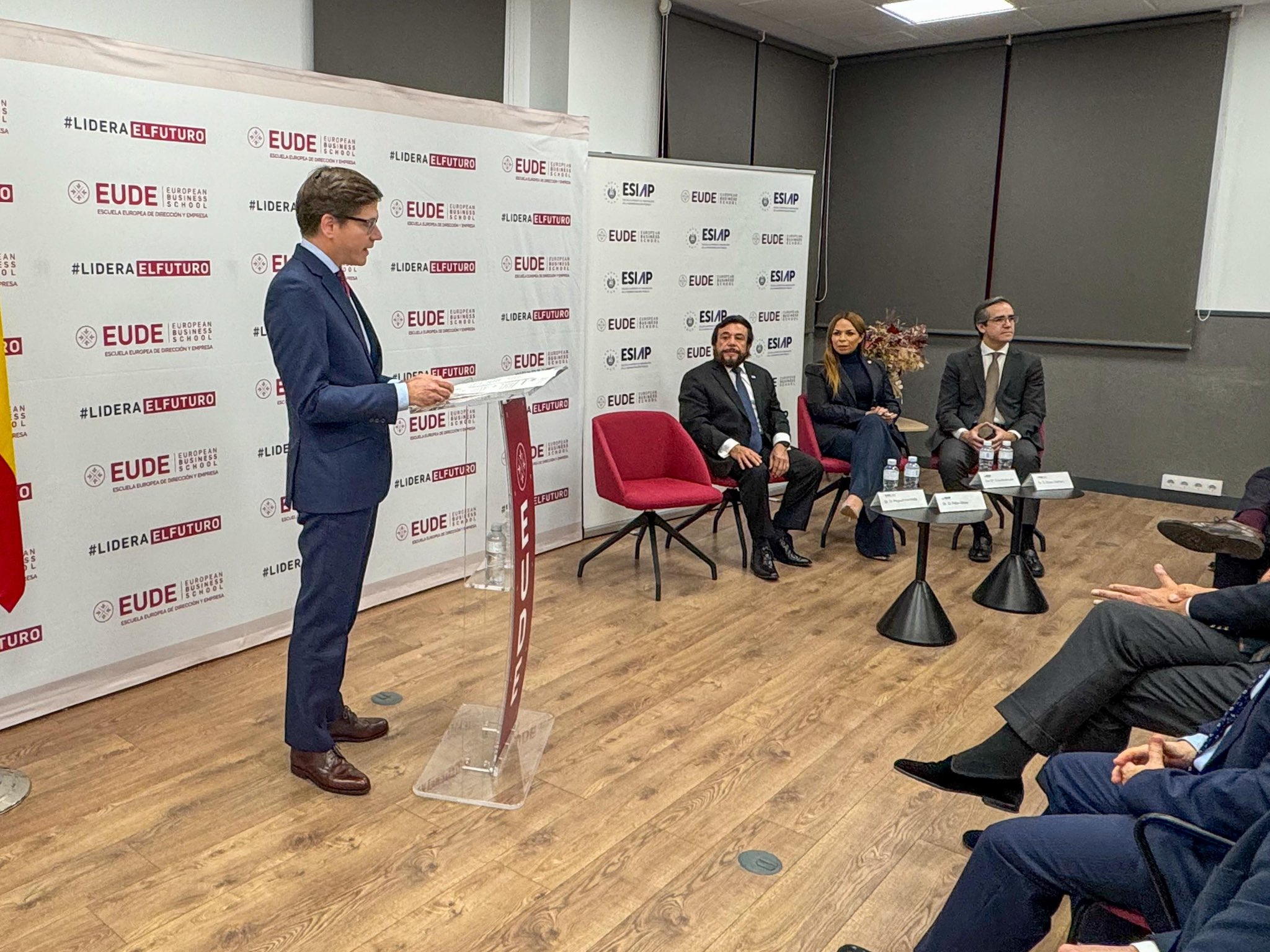 La Escuela Superior de Innovación en la Administración Pública (ESIAP) y la EUDE Business School anunciaron el lanzamiento de la nueva Maestría en Innovación en la Administración Pública, en el marco del convenio suscrito en 2022 por el Vicepresidente Félix Ulloa, en su calidad de rector de la ESIAP, junto al director de EUDE, Miguel Hermida. La alianza busca fortalecer la profesionalización de la administración pública salvadoreña.