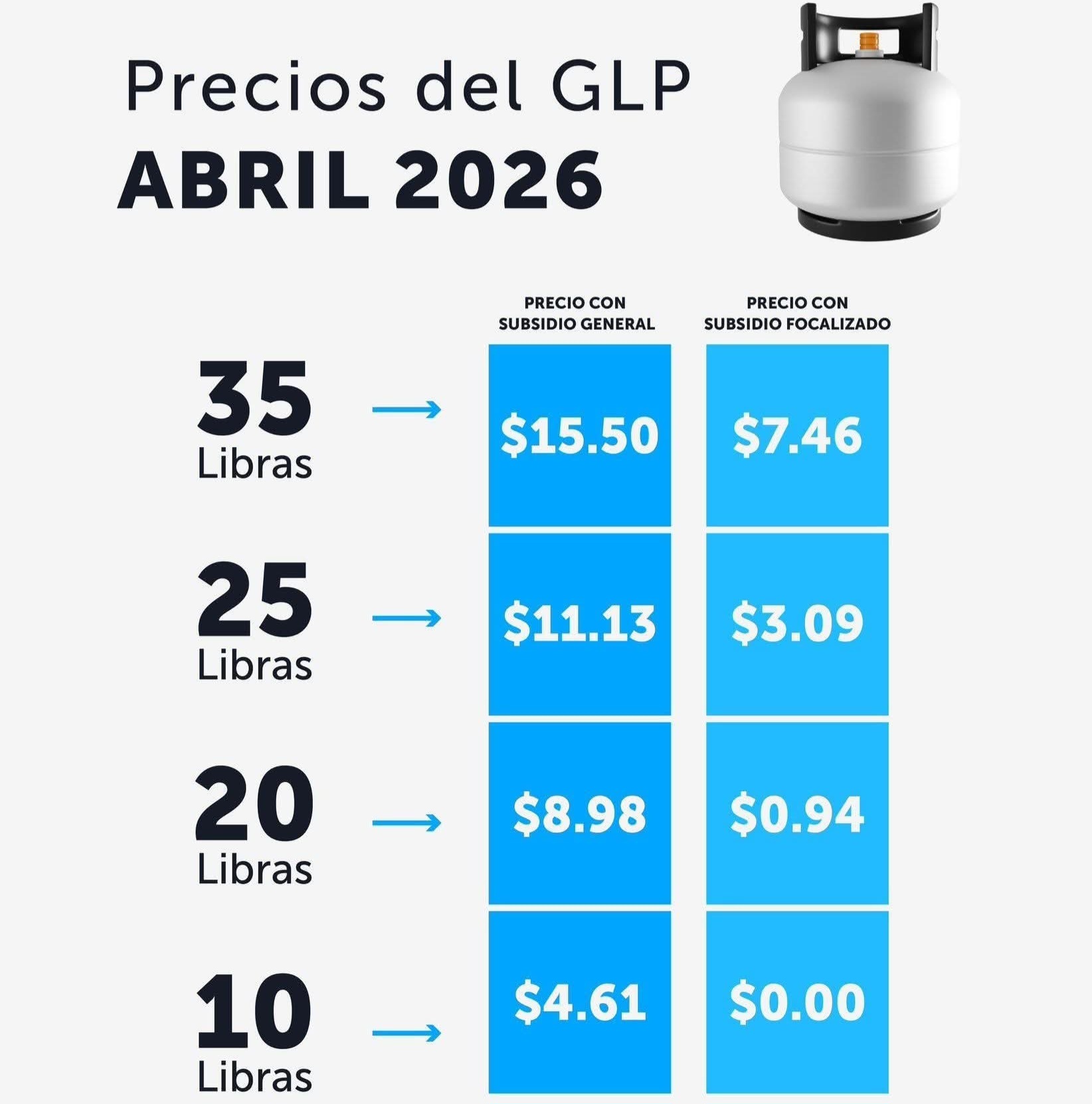 La Dirección General de Energía, Hidrocarburos y Minas dio a conocer los precios del Gas Licuado de Petróleo (GLP) que estarán vigentes durante abril de 2026 en todo el territorio nacional.