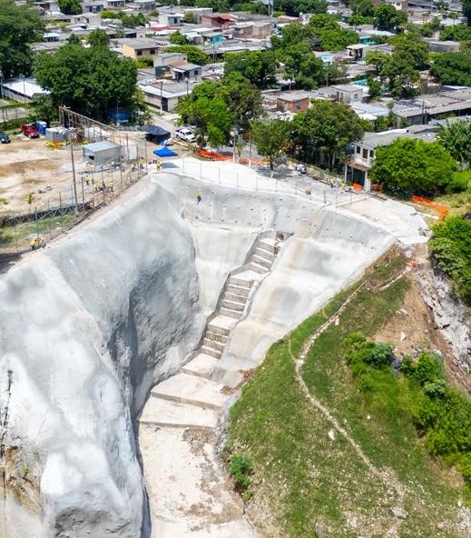 “Eran 36 familias al borde del riesgo y ahora podemos vivir tranquilos”, expresó una habitante del reparto Los Santos 1, durante la entrega de una obra de mitigación que permitió eliminar una cárcava que amenazaba sus viviendas.