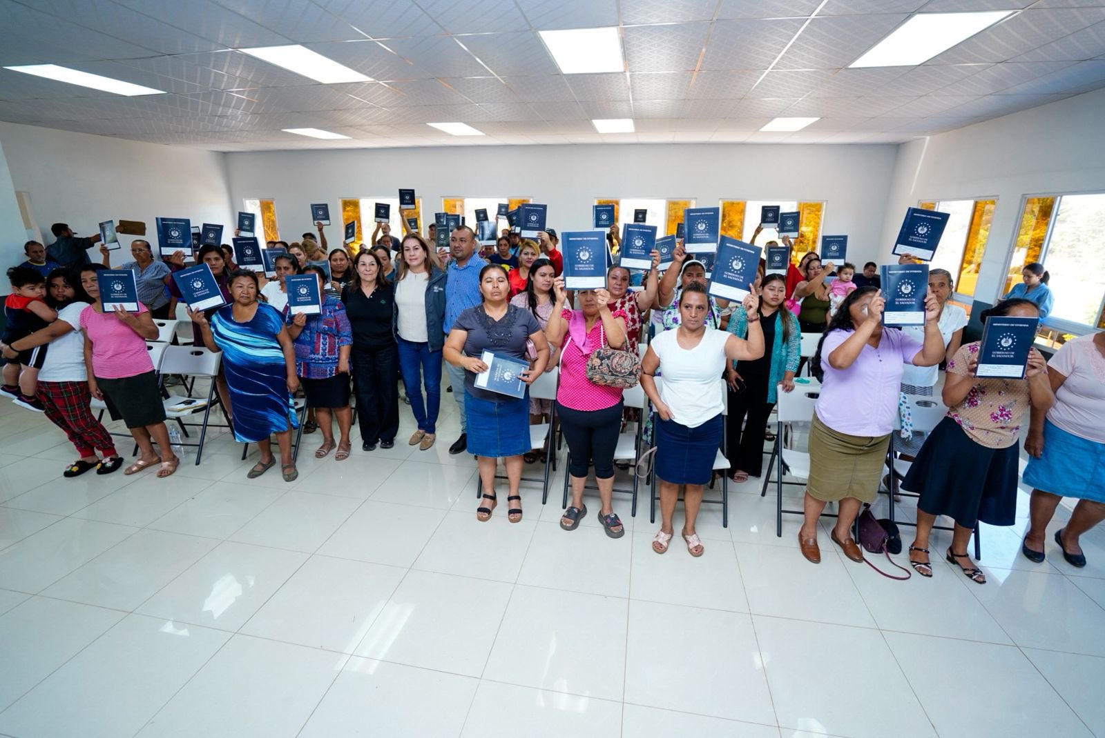 La ministra de Vivienda, Michelle Sol, informó que este día se entregaron escrituras de propiedad a 57 familias de la comunidad Onofre Durán, en Ahuachapán Centro, como parte del proceso de legalización que impulsa el Gobierno a través del Ministerio de Vivienda de El Salvador.