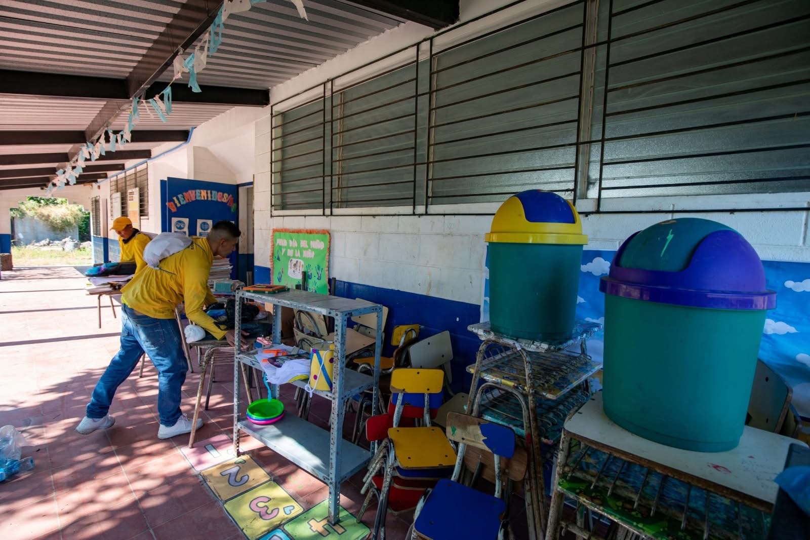 La renovación incluye áreas lúdicas, zonas ajardinadas, ventiladores en cada aula, juegos didácticos y un área de cocina. Además, se realizaron mejoras en infraestructura como pisos nivelados, paredes repintadas, nuevas ventanas y puertas.