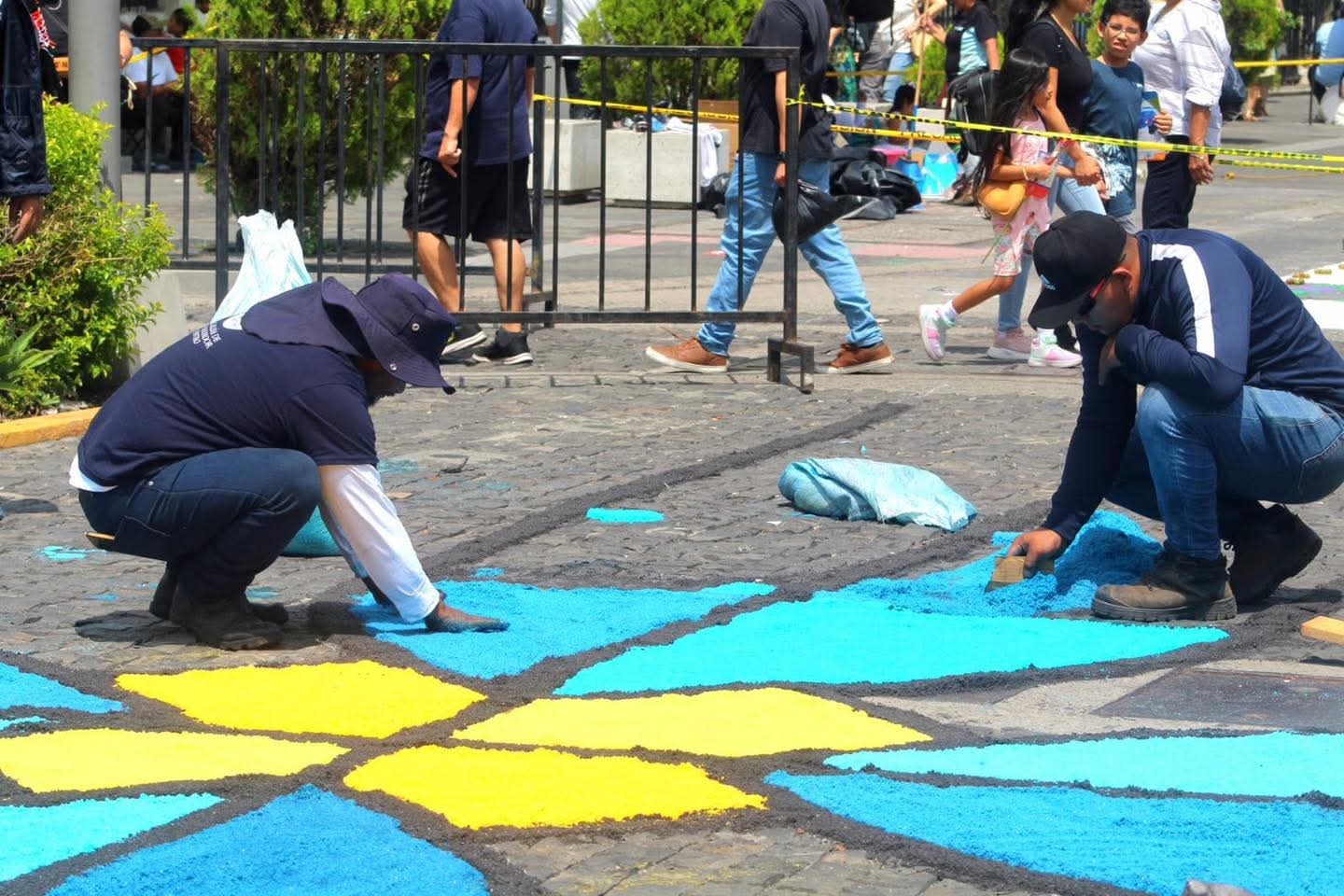 En la recta final de una de las tradiciones más emblemáticas de la Semana Santa, equipos de la alcaldía de San Salvador junto a más de 300 voluntarios afinan cada detalle de la mega alfombra que se extiende sobre la calle Rubén Darío, en el corazón del Centro Histórico, con el objetivo de hacer historia este Viernes Santo.