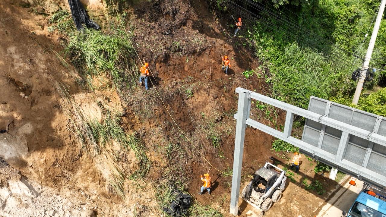 El talud afectado comprende una extensión de 1,250 metros cuadrados y generó un desprendimiento de 80 metros cúbicos. En la zona se hacen intervenciones en jornadas diurnas y nocturnas, para garantizar que las familias circulen seguras y sin inconvenientes.