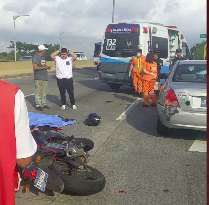 Socorristas de Cruz Roja Salvadoreña pertenecientes a la Seccional de Santa Tecla se encuentran atendiendo la emergencia de un motociclista accidentado. El percance se ha registrado esta tarde de viernes sobre el bulevar Monseñor Romero a la altura del Parque Bicentenario.
