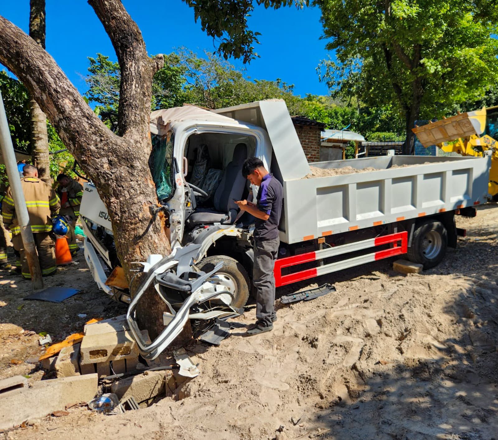 La Policía Nacional Civil informó sobre un aparatoso accidente de tránsito ocurrido en el kilómetro 57 ½ de la carretera que conduce de San Salvador hacia Santa Ana, donde un camión se salió de la vía y terminó impactando contra un árbol.
