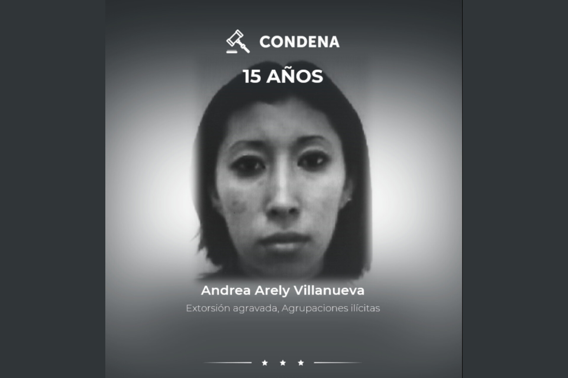 La Fiscalía General de la República (FGR) informó que Andrea Villanueva fue condenada a 15 años de prisión por los delitos de extorsión agravada y agrupaciones ilícitas.