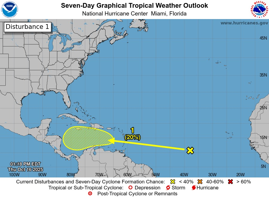 El Ministerio de Medio Ambiente y Recursos Naturales (MARN) informó que una onda tropical se localiza en el océano Atlántico tropical, y su desplazamiento previsto es hacia el mar Caribe durante los próximos siete días. Según el informe meteorológico emitido este jueves 16 de octubre de 2025, el sistema podría desarrollarse de forma lenta a mediados de la próxima semana.