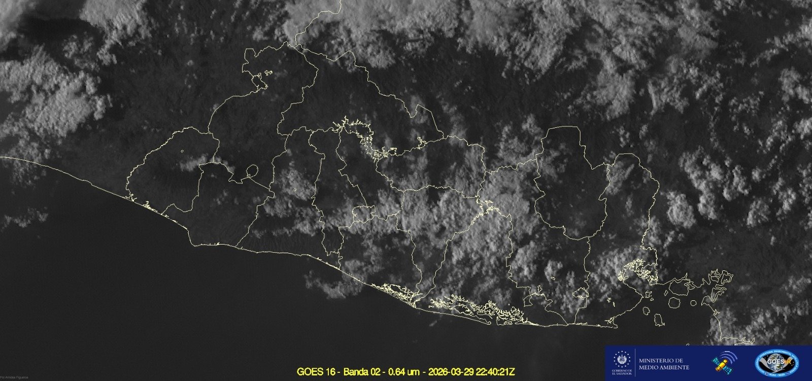 El Ministerio de Medio Ambiente y Recursos Naturales (MARN) informó el pronóstico del tiempo para la noche de este domingo 29 de marzo, válido desde las 5:00 de la tarde hasta la medianoche.