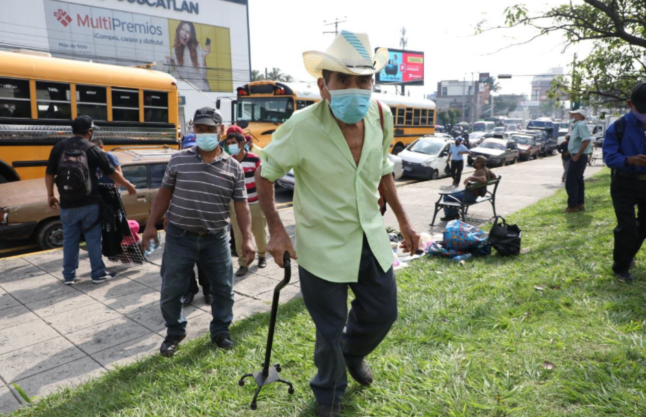 “¡CAMINEN! ¡CAMINEN! ¡CAMINEN!”, repiten los promotores a los adultos mayores de la marcha, quienes a paso lento y en una fila india continúan su camino desde El Salvador del Mundo hasta las instalaciones de la Asamblea Legislativa.