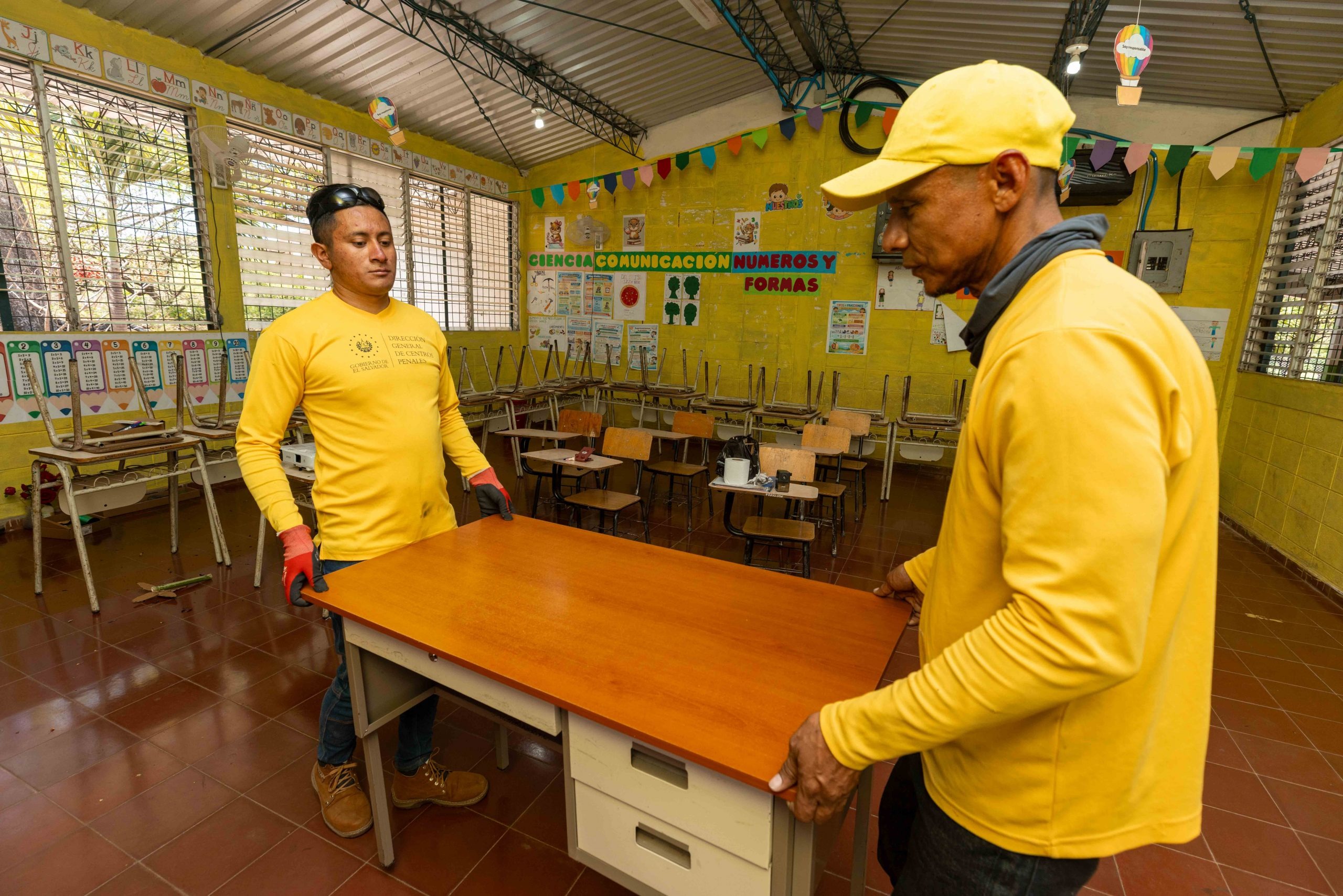 En Sonsonate Centro, privados de libertad en fase de confianza están llevando a cabo la reconstrucción del Centro Escolar Caserío Santa María Coquiama, como parte de acciones orientadas a mejorar la infraestructura educativa.