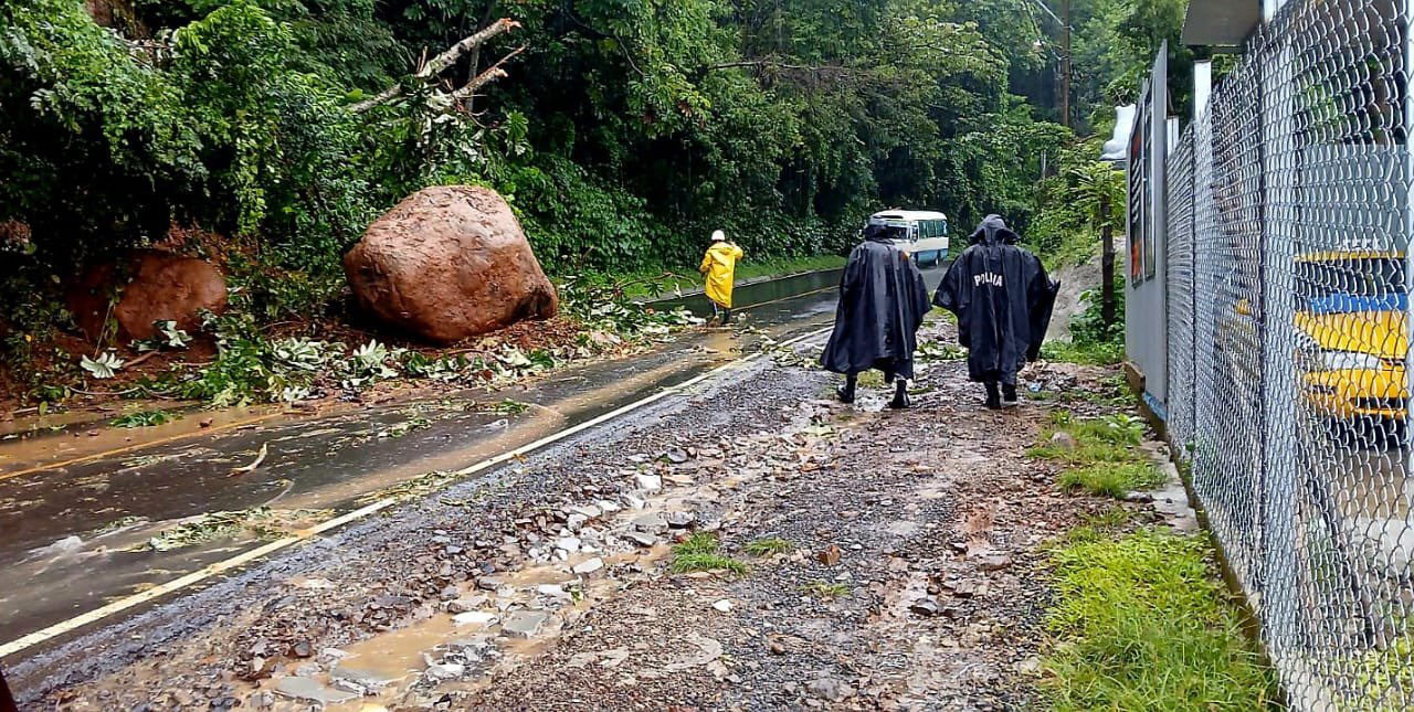 La Policía Nacional Civil informó que una roca de gran tamaño bloquea un carril sobre el km 31 de la carretera que conduce hacia Panchimalco, en San Salvador Sur.