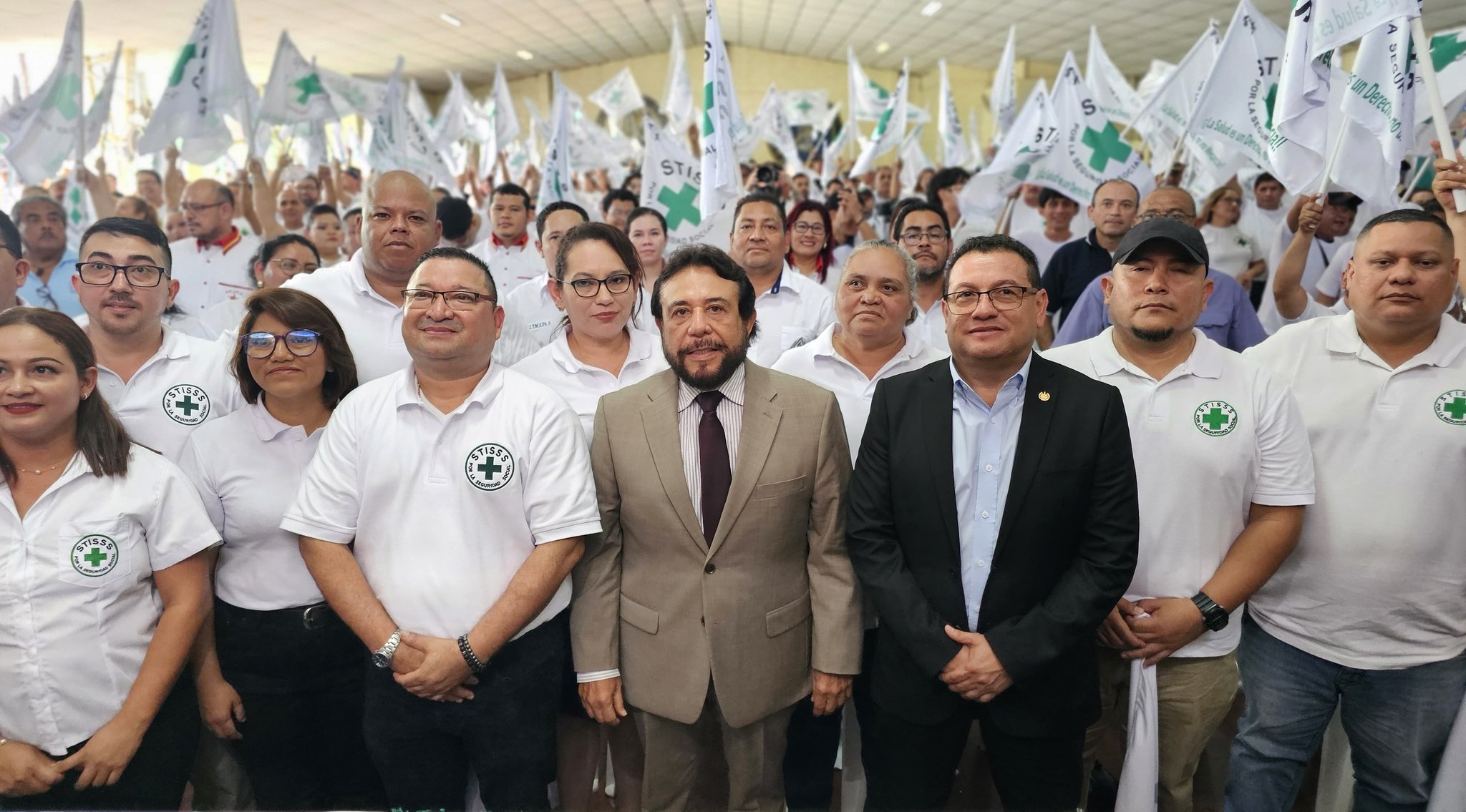 Durante la ceremonia participó el ministro de Trabajo, Rolando Castro, quien acompañó al secretario general del STISSS, Edwin Ortez, en la entrega del reconocimiento.