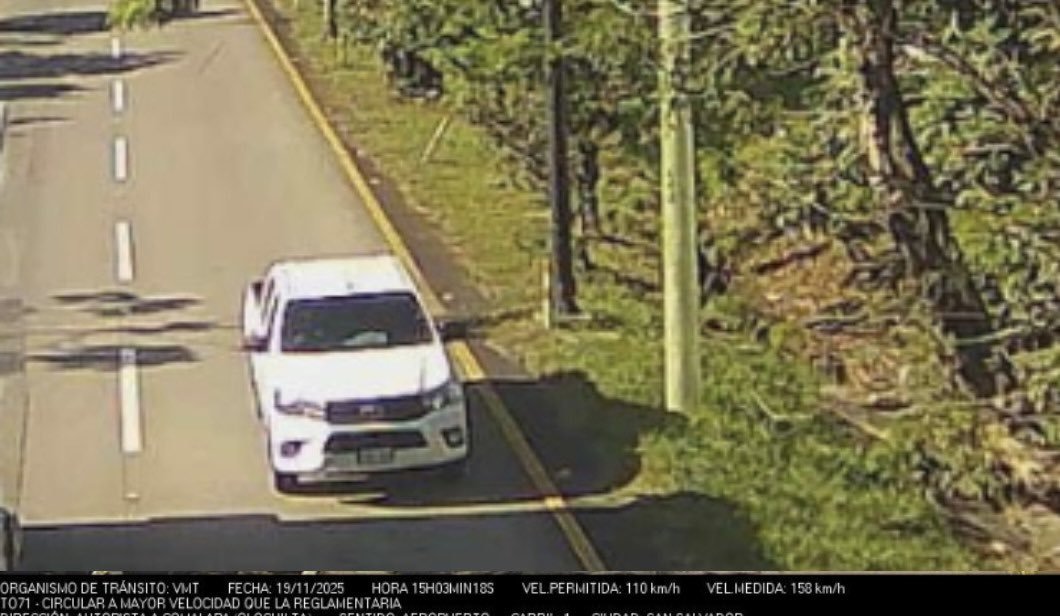 A través del sistema de fotomultas, las autoridades del Viceministerio de Transporte, identificaron a un automovilista que circulaba a 158 kilómetros por hora en la autopista a Comalapa, una velocidad que supera ampliamente los límites permitidos en ese tramo.