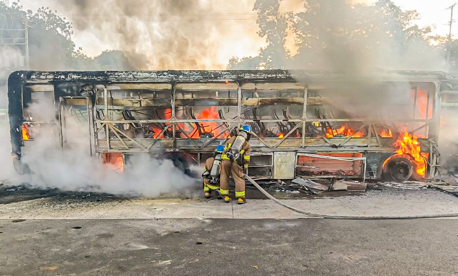 El Cuerpo de Bomberos de El Salvador, atendió con rapidez un incendio que se registró en un autobús de la ruta 201, en el kilómetro 26 ½ de la carretera Panamericana, en el sector de Intercomplex, San Juan Opico, La Libertad Oeste.
