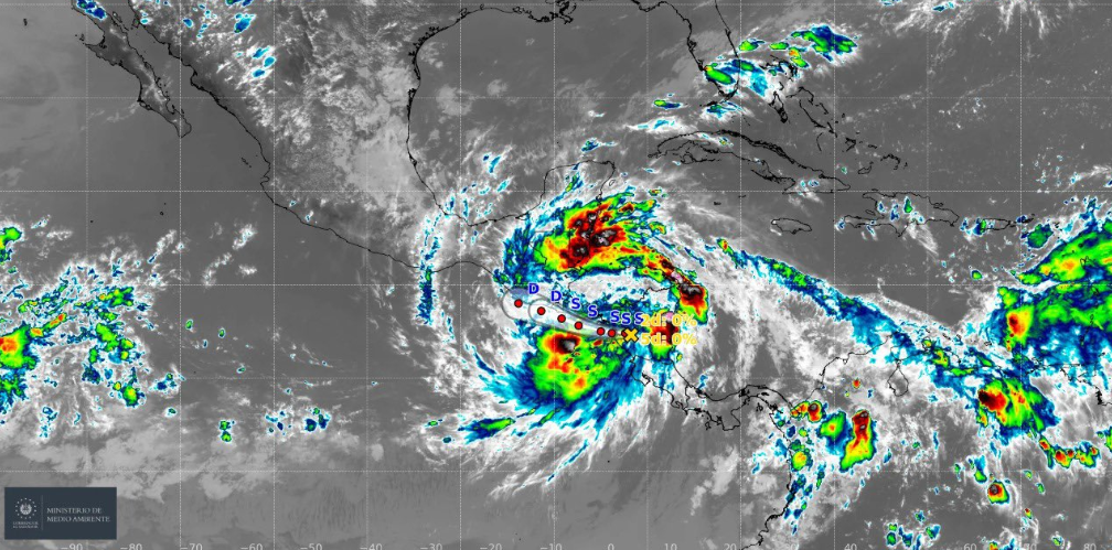 Según los informes de Medio Ambiente, actualmente se ubica a 290 kilómetros al sureste de San Salvador, con vientos máximos de 85 km/h. Se prevé que este sistema influya con lluvias y tormentas intensas, acompañadas de ráfagas de viento de 80 km/h o más durante esta noche y la madrugada del lunes.