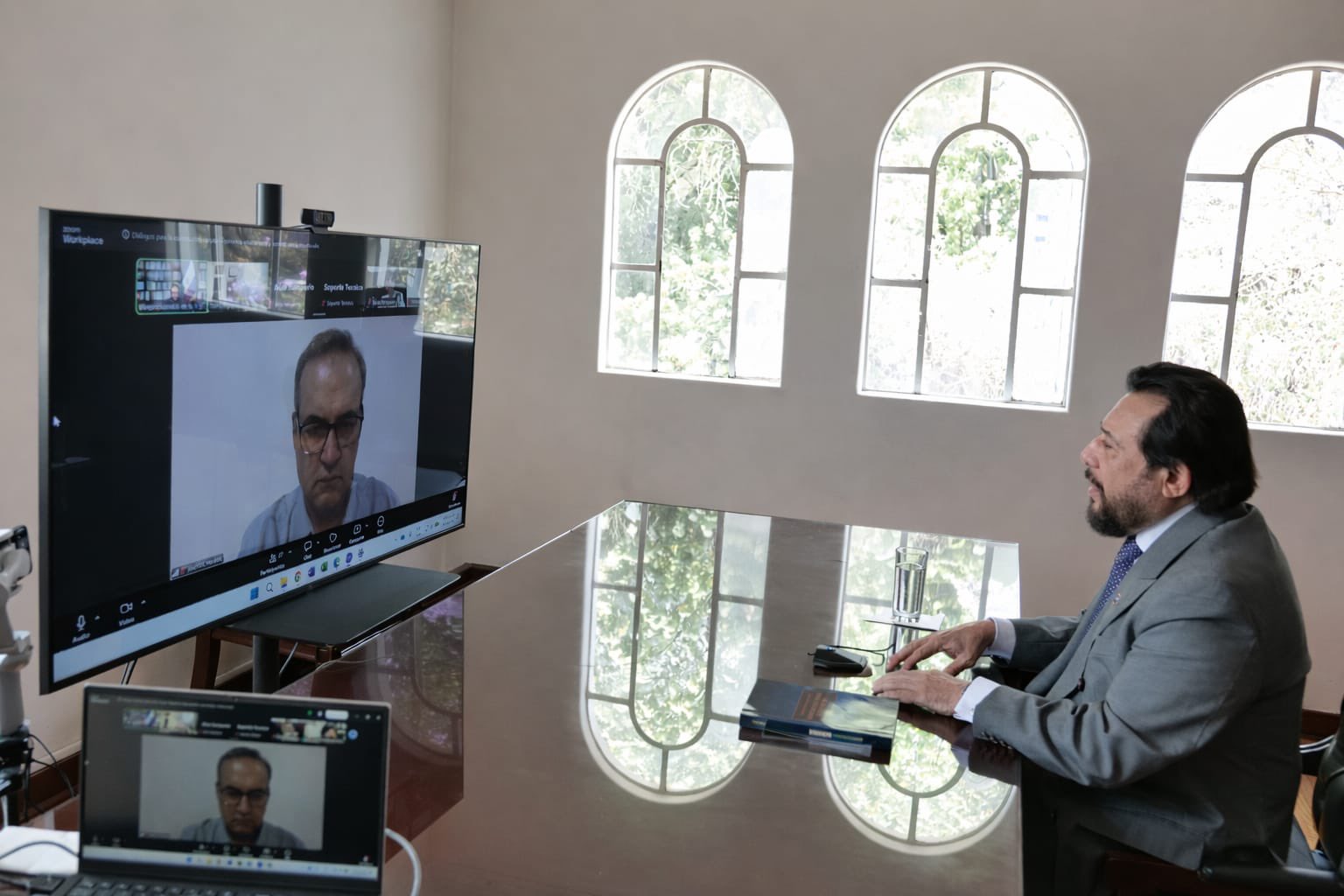 El Vicepresidente de la República de El Salvador, Félix Ulloa, participó en un diálogo con autoridades de la Universidad Autónoma del Estado de México, así como con representantes del Instituto Electoral del Estado de México y del Instituto Nacional Electoral, en el marco de un espacio académico enfocado en el intercambio de experiencias sobre la construcción de paz y los desafíos actuales de la región.