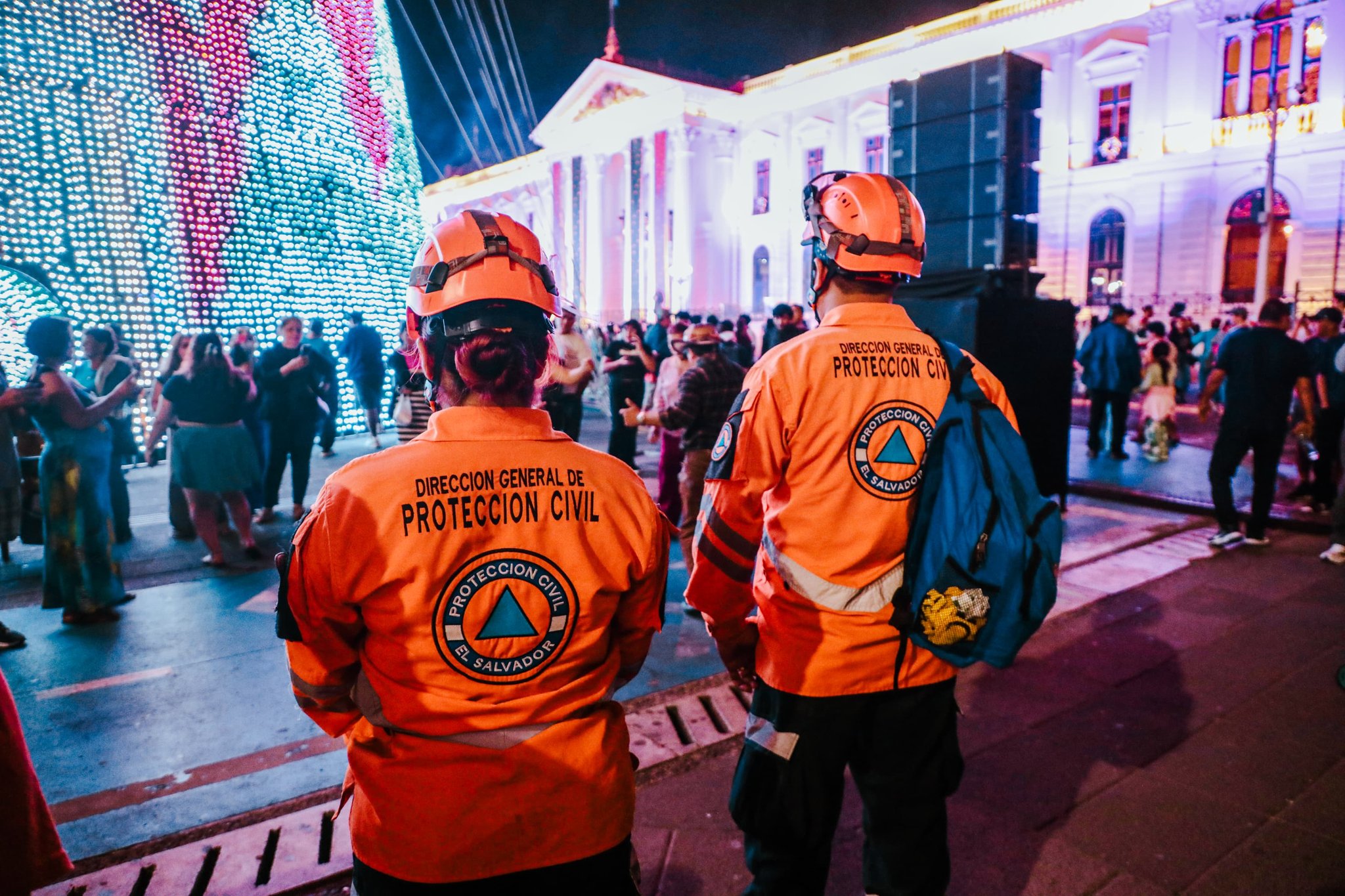 Personal del sistema nacional de Protección Civil mantiene un operativo de vigilancia permanente en la Villa Navideña ubicada en el Centro Histórico de San Salvador, con el objetivo de garantizar la seguridad de las familias que visitan el lugar durante la temporada festiva.